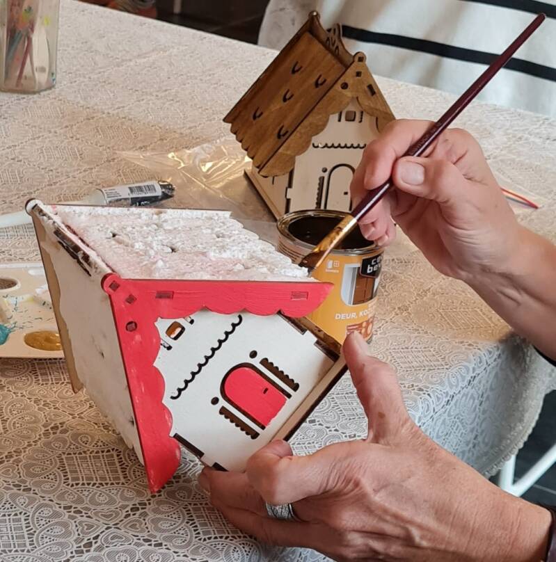 Voor ouderen dagbesteding Wilhelmina van Sonsbeeck uit Zwolle hebben wij een schenking gedaan van 15 houten kersthuisjes.
