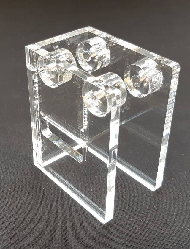 - Achterwand met wordwrap zijn uit 5mm Acryl gelaserd