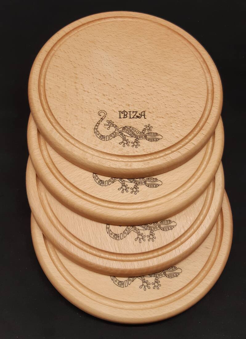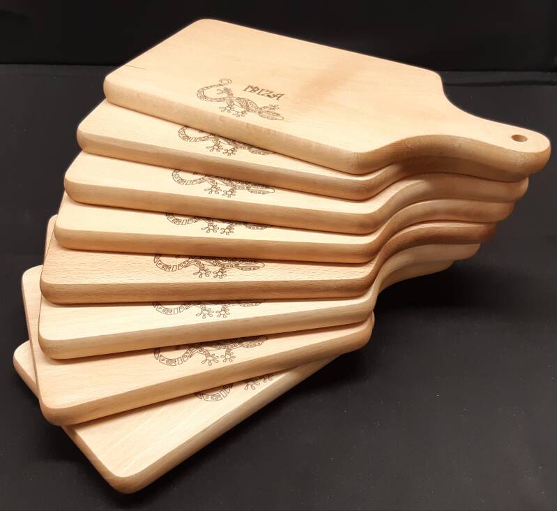 De speciale snijplanken moesten een 'Ibiza' thema hebben, vanwege de gezamenlijke reis van alle collega's en de directie, die eraan te komen zit.